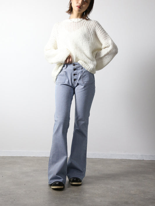 貼りポケヒッコリーベルボトムジーンズ 1970年代復刻 ブリーチカラー/ユニセックス