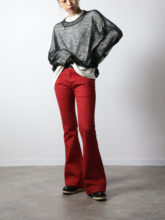 ジンバブエコットン ベルボトムジーンズ レッドカラーデニム/ユニセックス