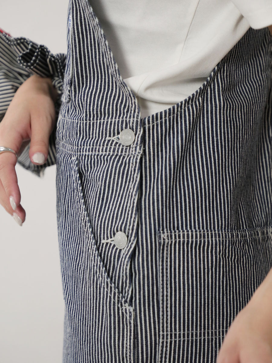 10オンスの岡山ヒッコリーデニム。100年ほど前、鉄道の作業着に使用されていた清涼感溢れるヒッコリ―ストライプ柄を高品質な岡山デニムで織りあげました。通年着用できる適度な肉厚。丈夫でタフな生地であなたの人生に寄り添います。