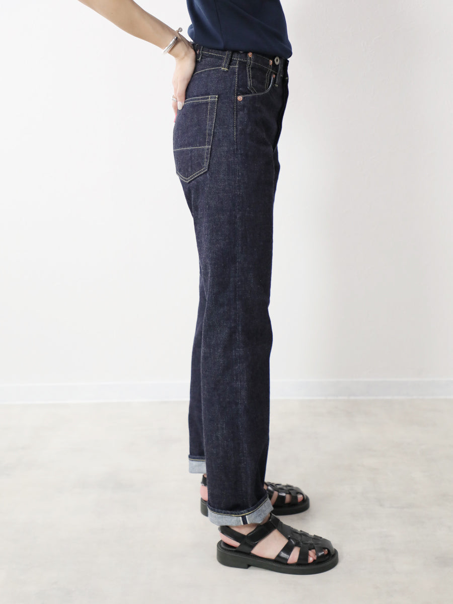 13.5オンスの着やすく通年対応の万能なセルビッチデニムデニム。旧式のシャトル機で織られた証「赤耳」。