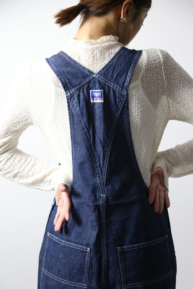10オンスの上質な岡山デニムで通年着用できる生地感。オーバーオールに相性抜群の平織で、横糸をベージュで染めることでビンテージ感を演出しています。
