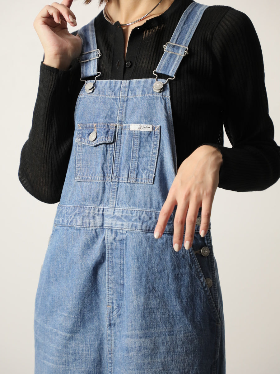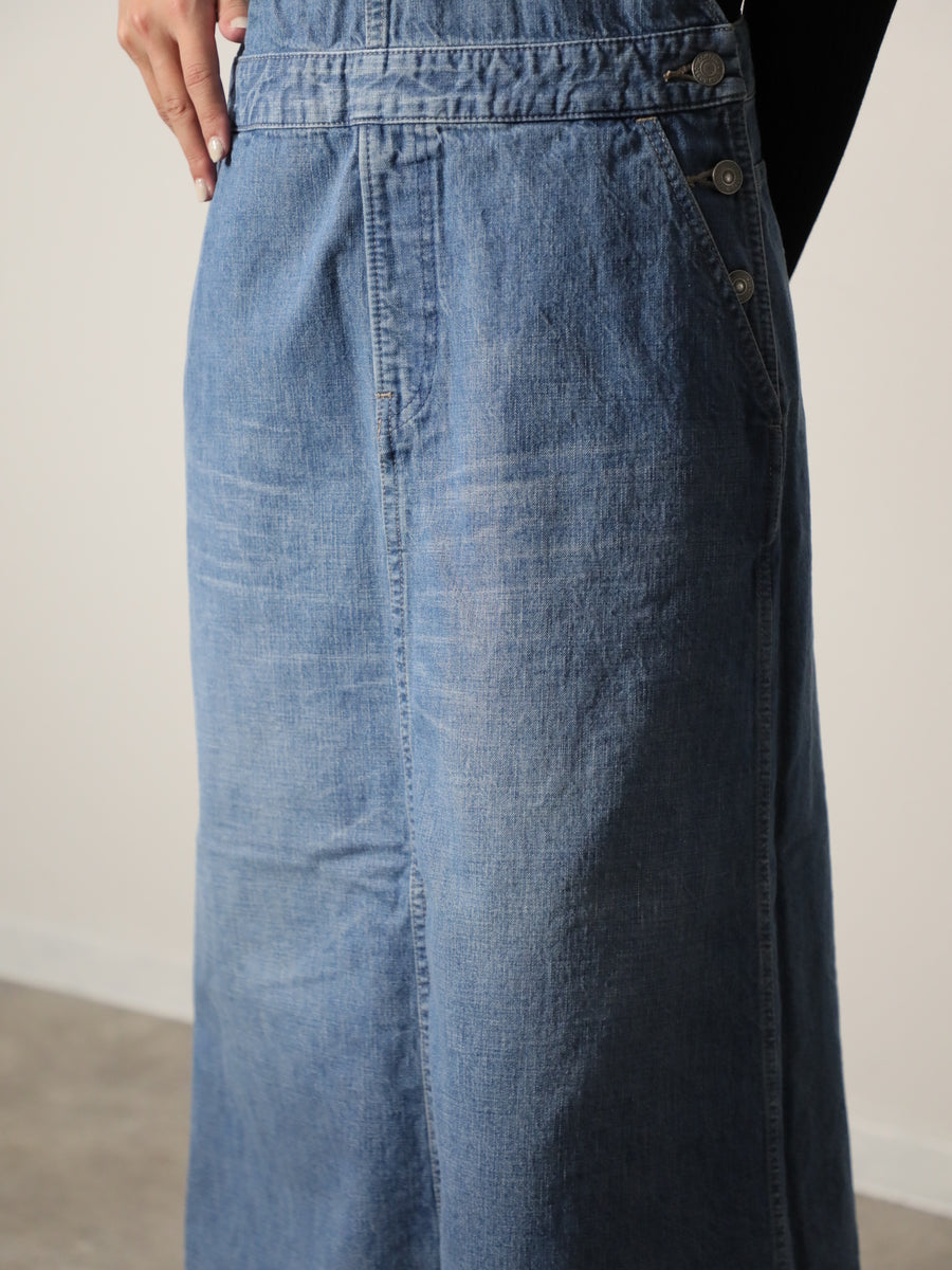 10オンスの上質な岡山デニムで通年着用できる生地感。オーバーオールに相性抜群の平織で、横糸をベージュで染めることでビンテージ感を演出しています。