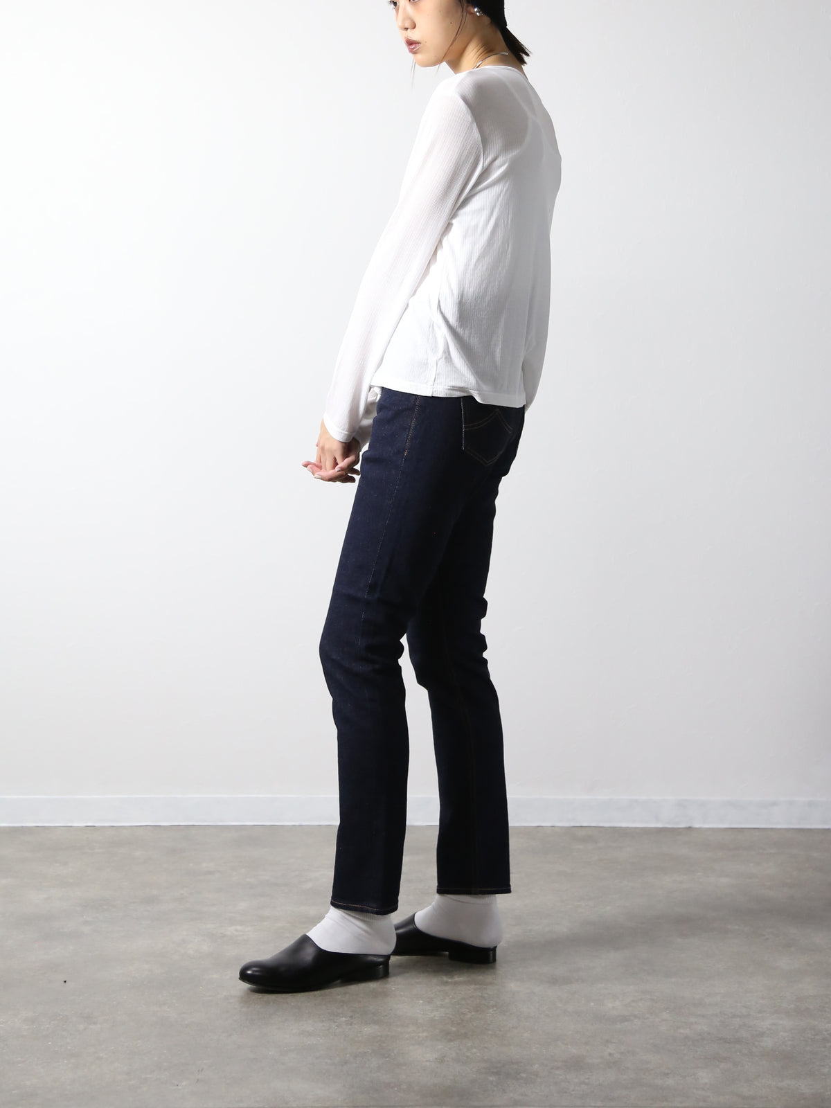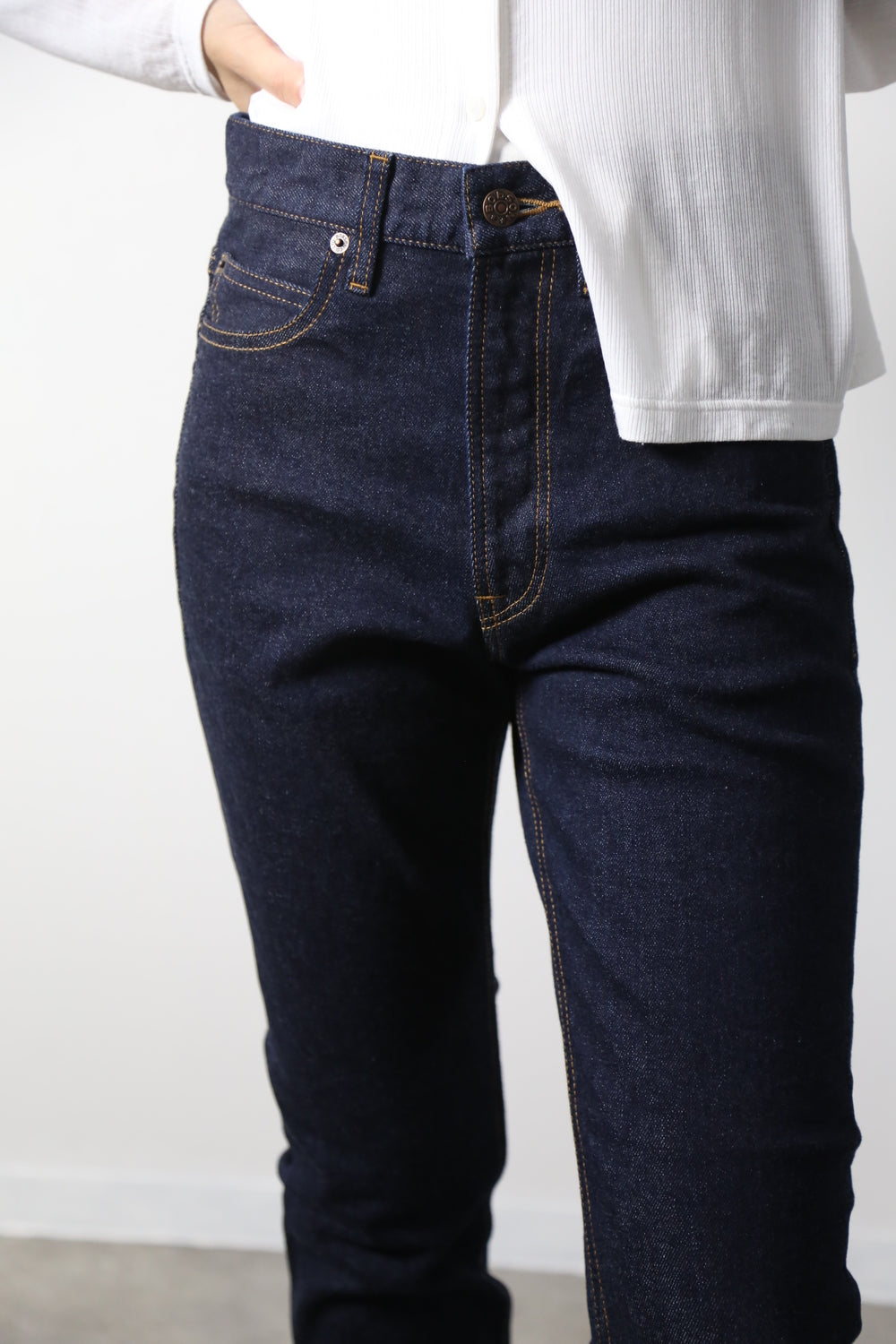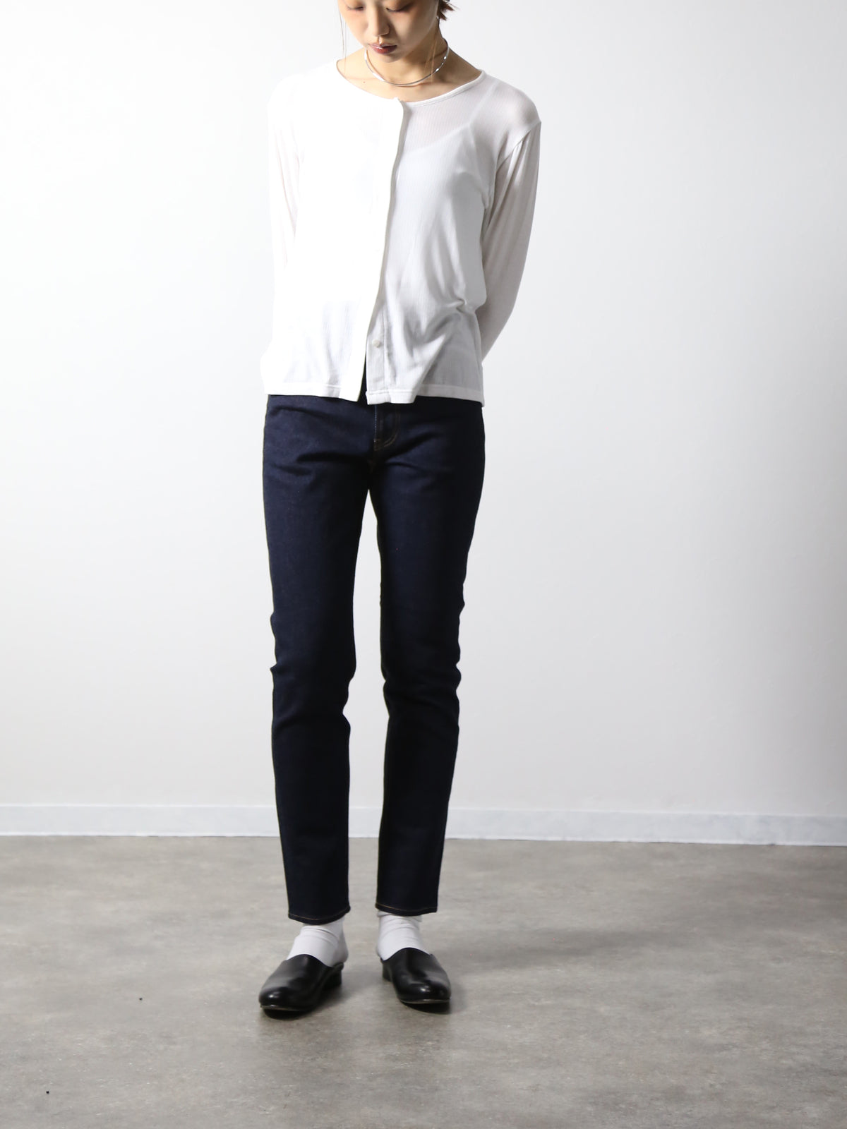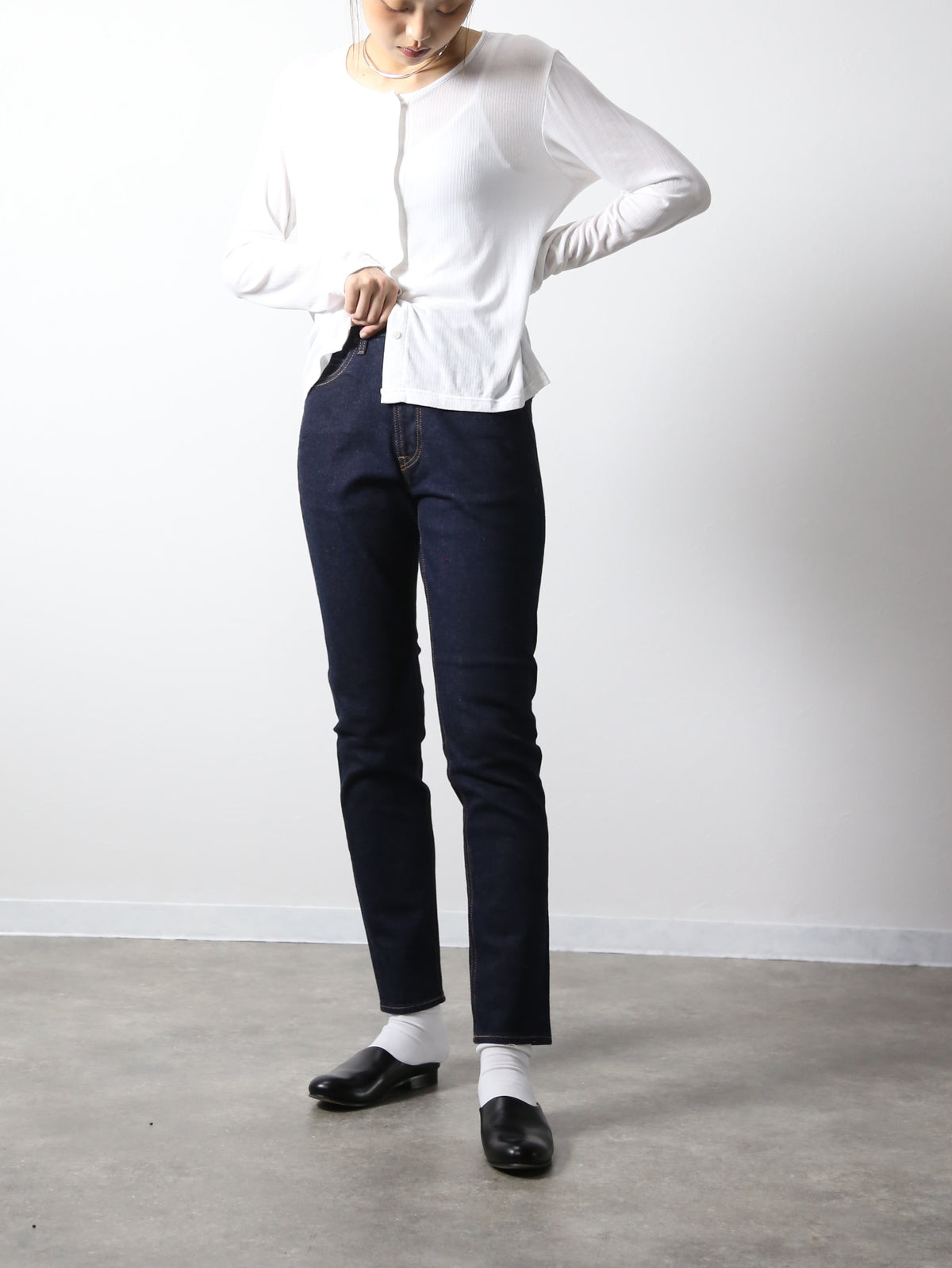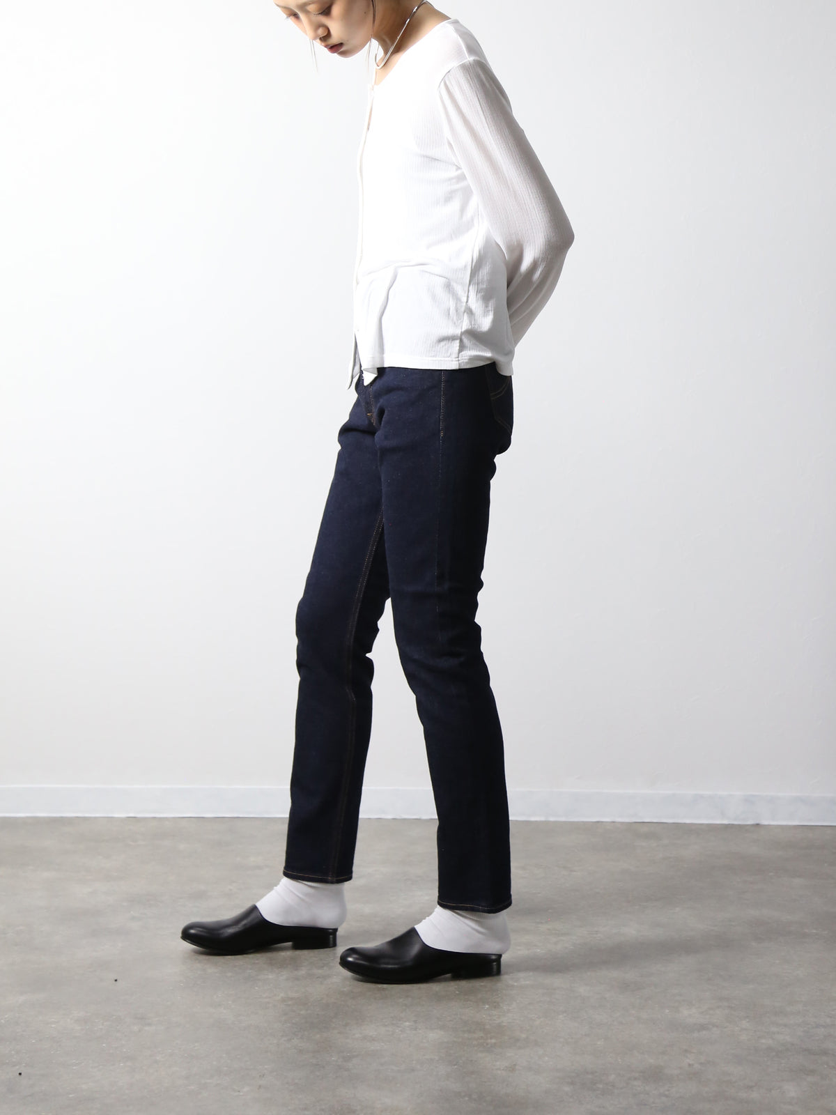 岡山デニムの中で若干のストレッチが入った生地を選定。着やすさとカジュアルエレガントを両立させた1本でBOBSONの設計はポケットの位置のバランスによってヒップが目立ちにくく高い脚長効果があります。 ウエストからスソにかけての細くなるテーパードの形は美しいシルエットラインでカジュアルシーンのスニーカーや綺麗めコーデのパンプス、ヒールなど幅広くコーデを楽しめます。 保湿性も高く滑らかな肌触りで生地の強度も高く末長く着用していただけます。