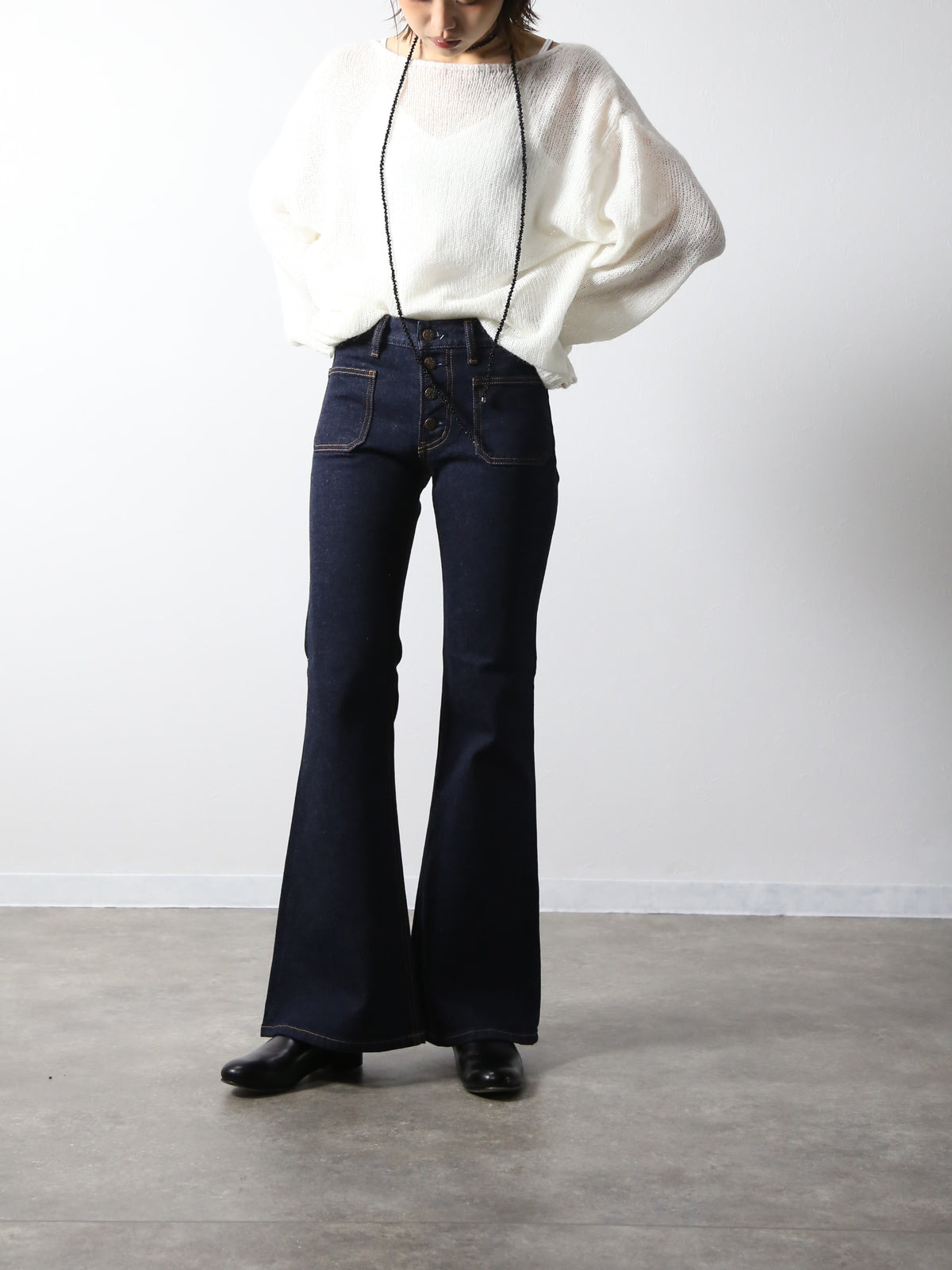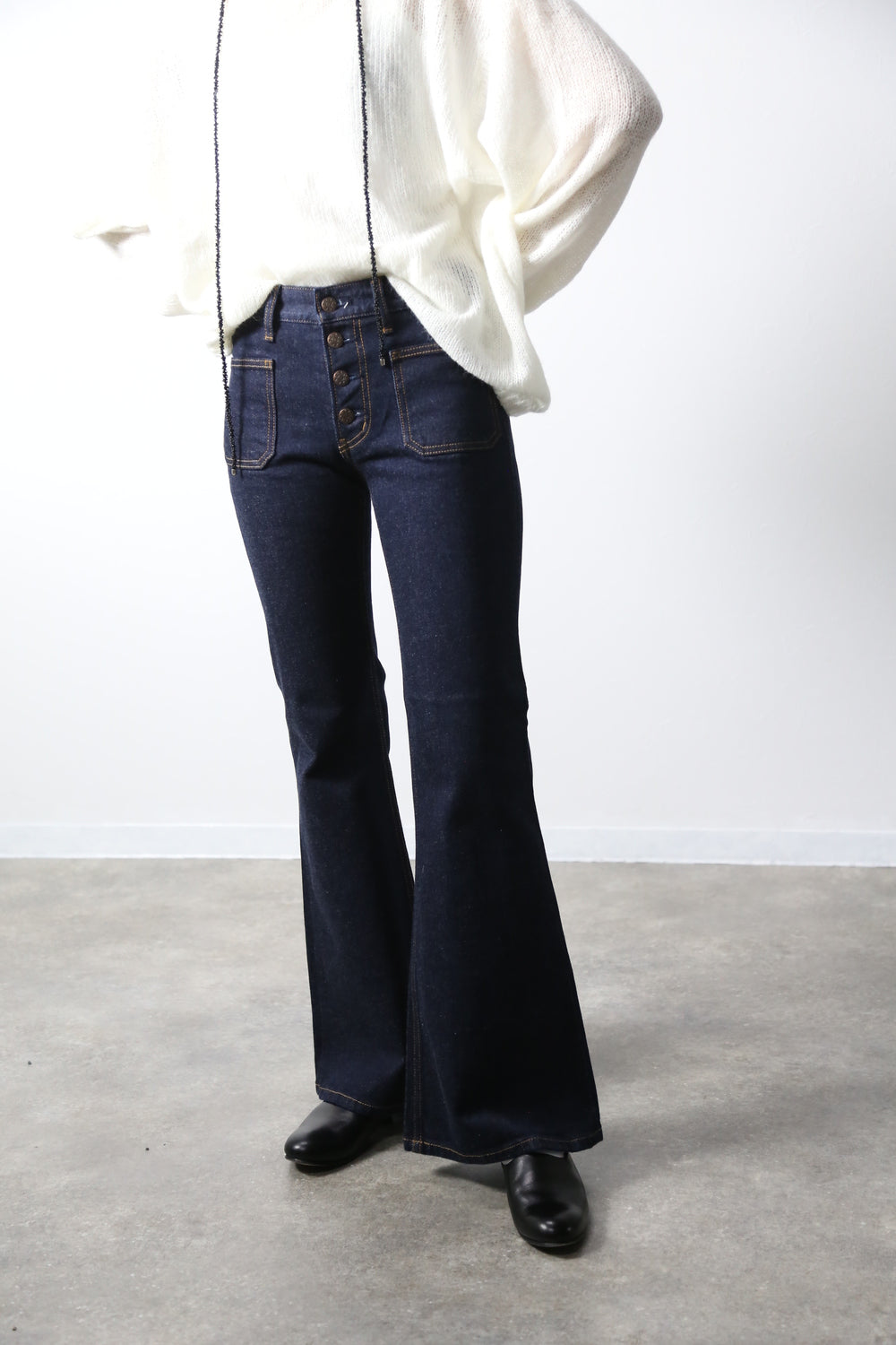 1970〜1980年代の復刻商品。50年以上愛されるヒッピーの象徴BOBSONのベルボトム。貼り付け型ポケットベルボトムで脚長効果抜群のフレアシルエットに小さなポケットがついたノスタルジーを感じるフェイス。王道のカジュアルコーデやフェミニンなコーデまで1本持ってたら重宝するアイテムです。 少しストレッチが効いている肌触りのいい岡山デニムで仕上げています。