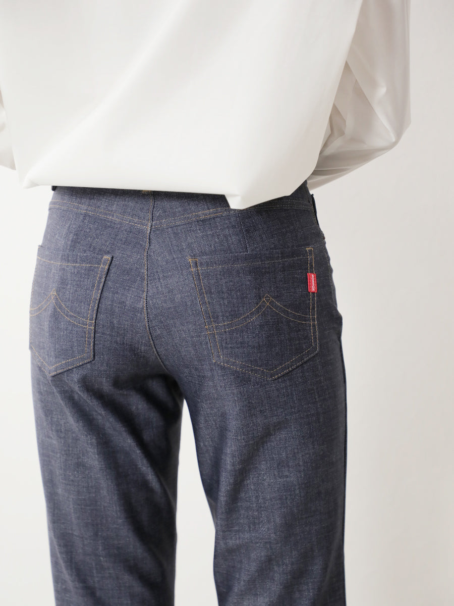 リアルなデニムの転写生地を採用し、しなやかなハイテンション素材で仕立てられた1本。