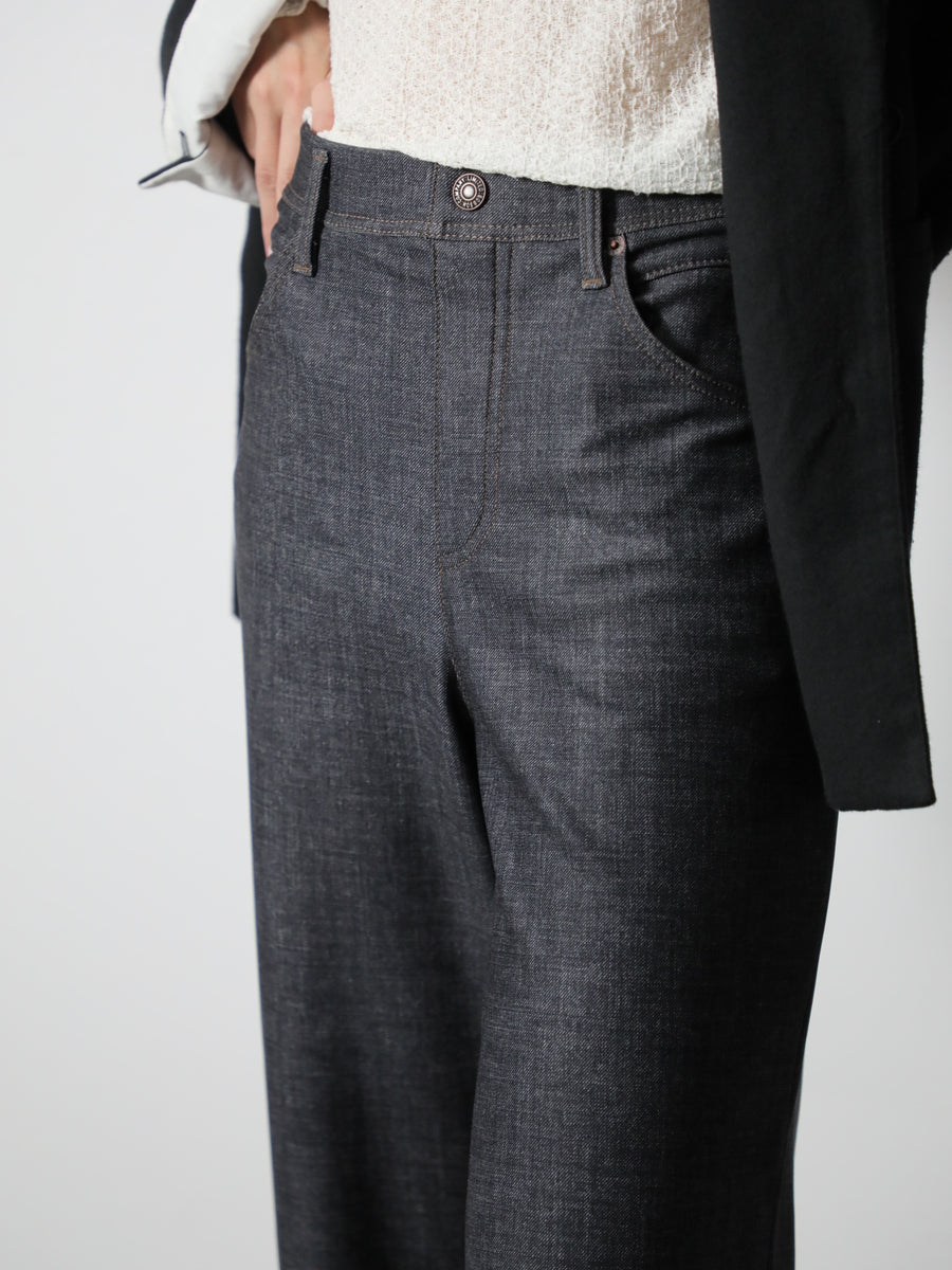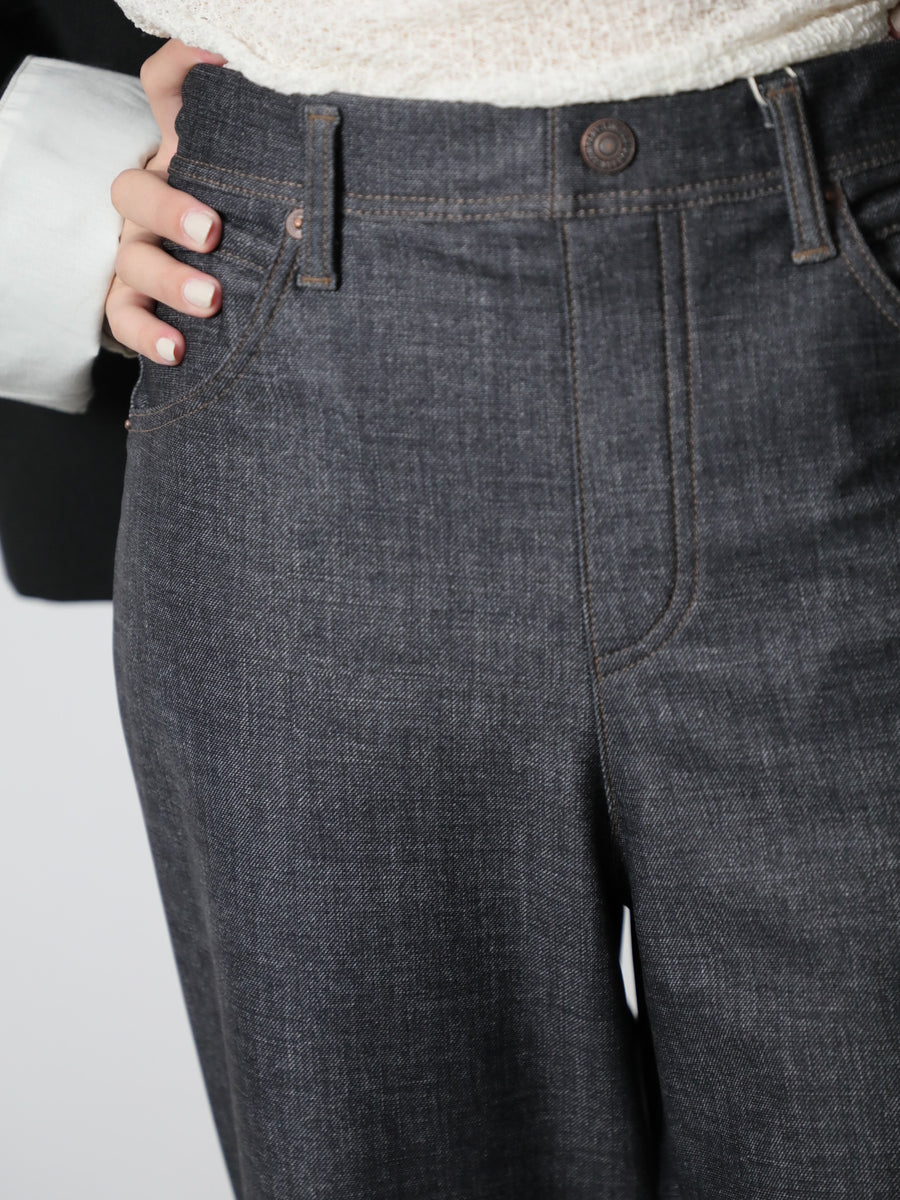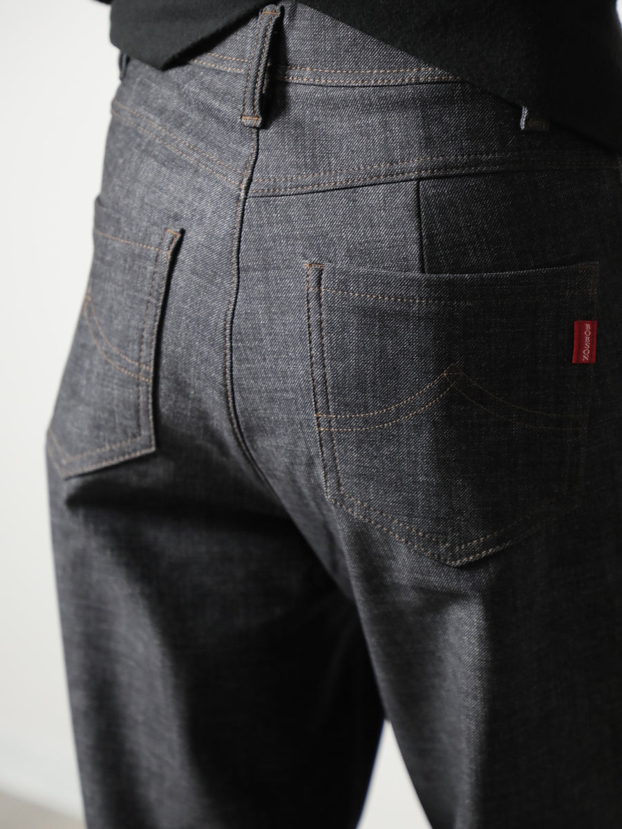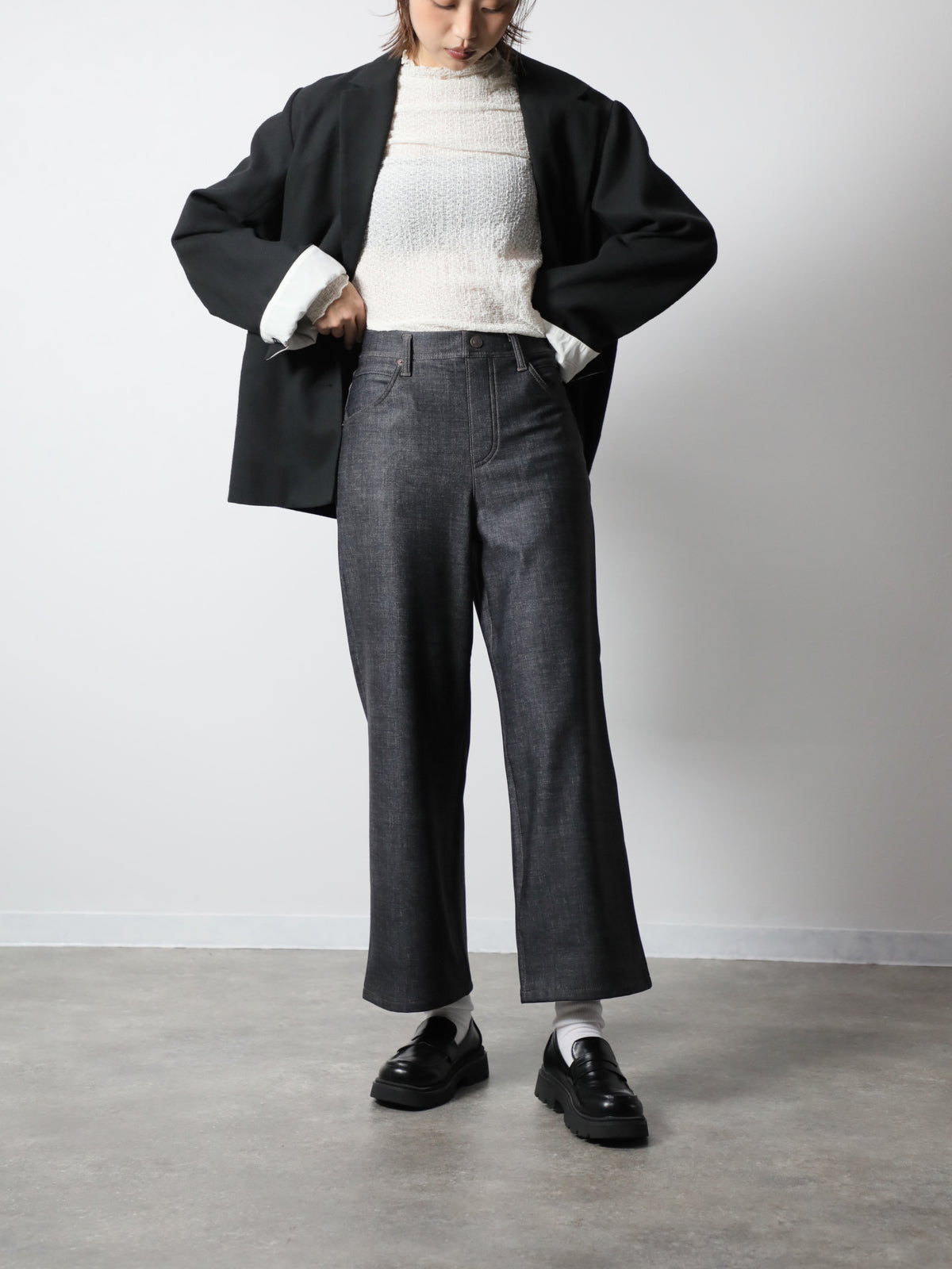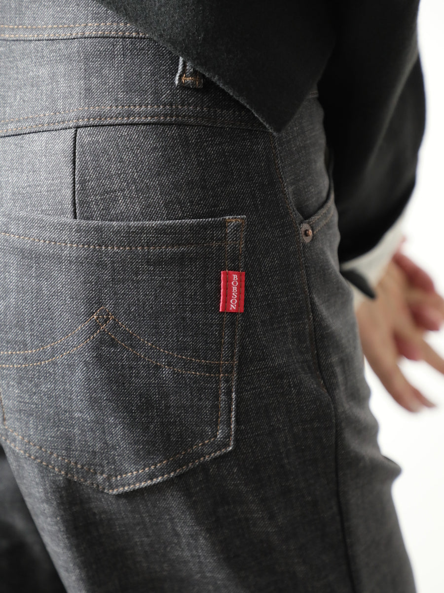 【210ジーンズ裏起毛】デニムライク ソフトタッチハイテンション セミワイド ブラックカラー